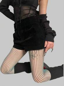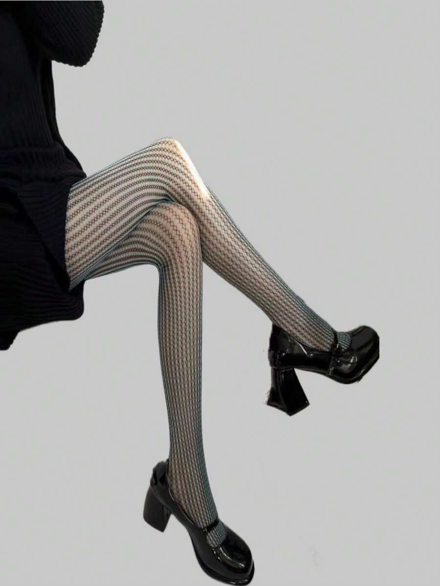 Fairycore 1 Pair Women AB Black-Green Fishnet Stockings Tights For All Seasons