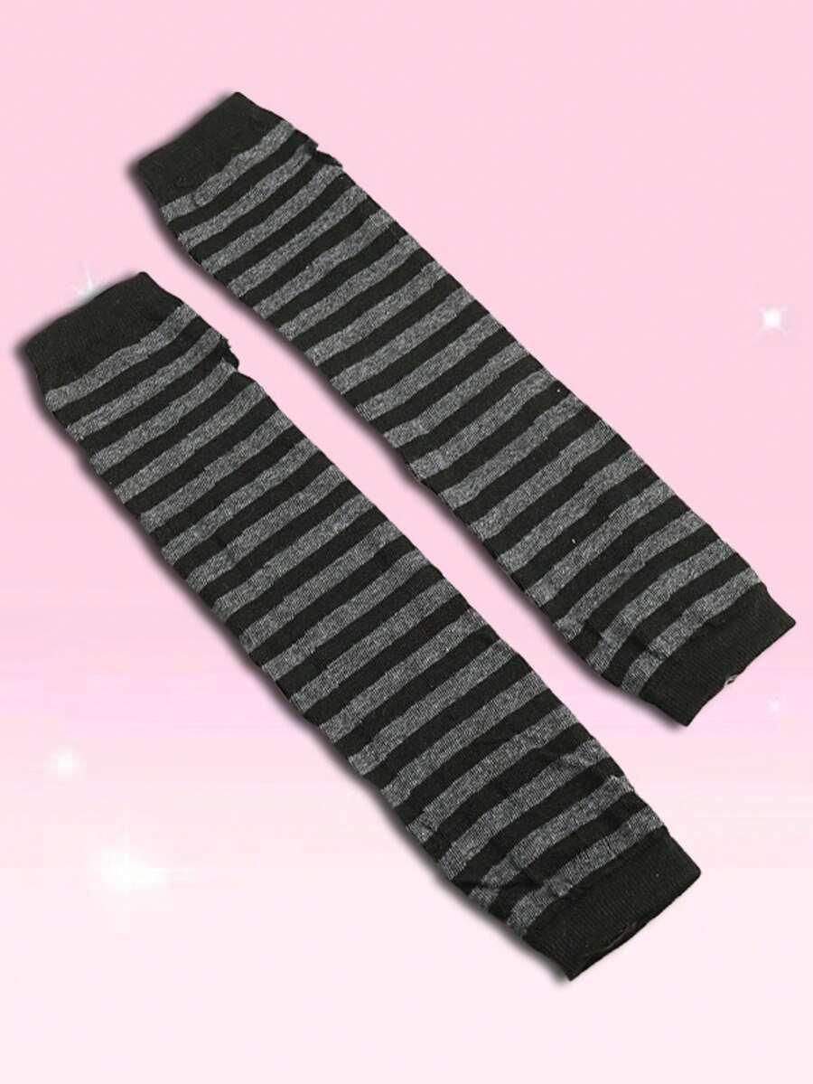 Fairycore 1pair Black Striped Fashionable Arm Sleeves For Women