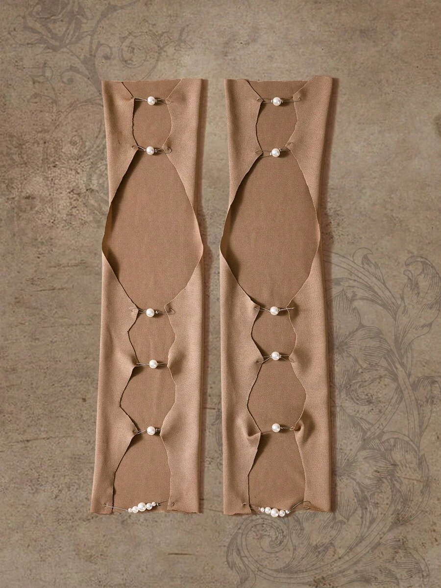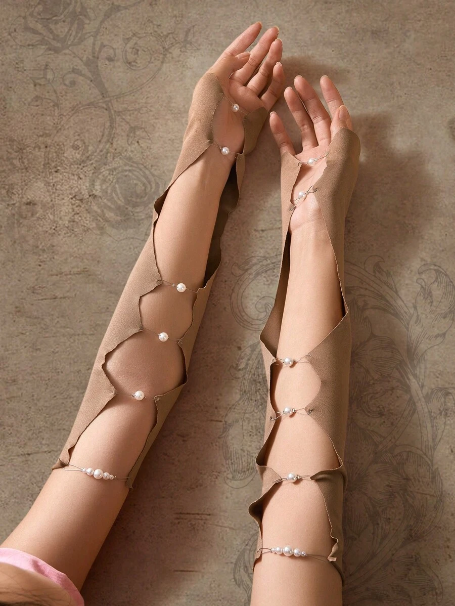 Fairycore 1pair Women Faux Pearl Decor Cut Out Arm Sleeve