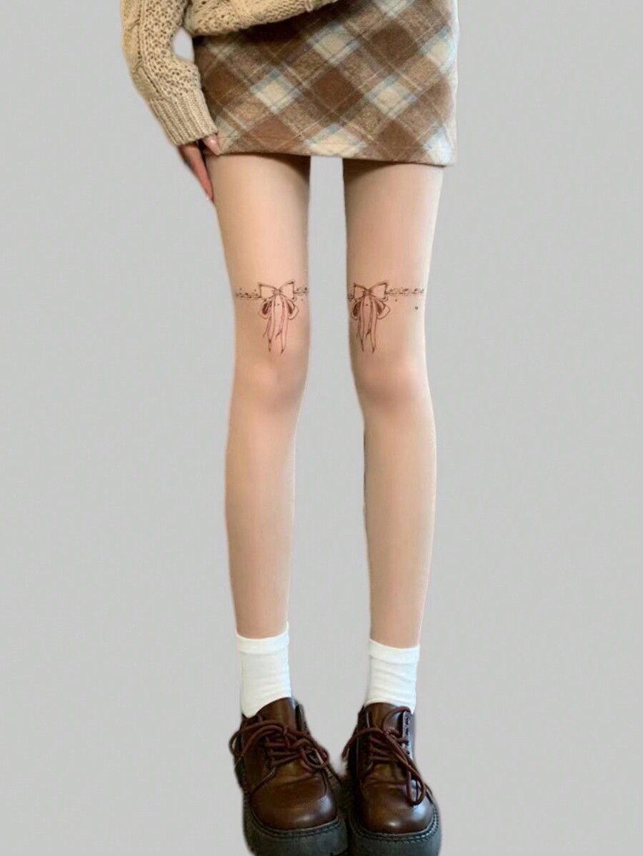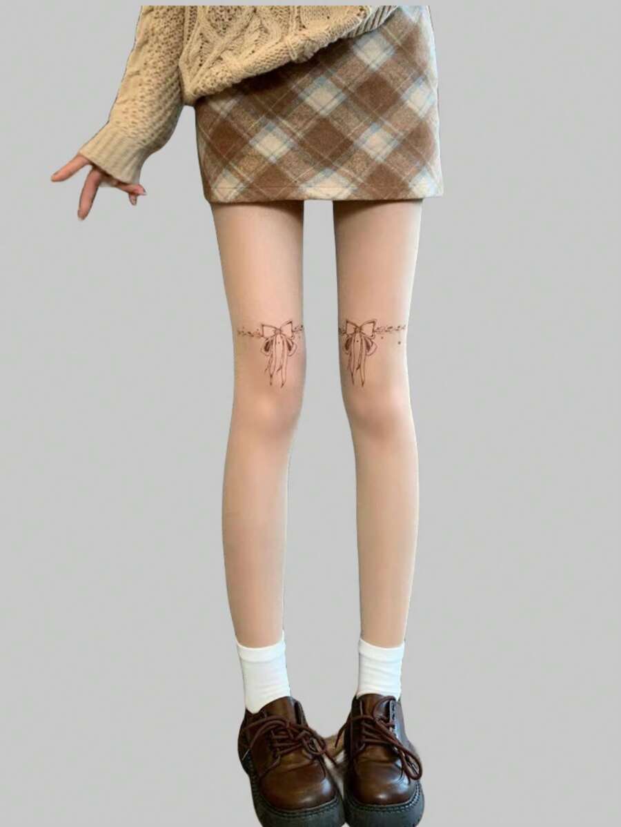 Fairycore 1pair Women's Nude Bowknot & Floral Patterned Tights For All Seasons