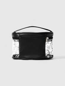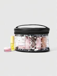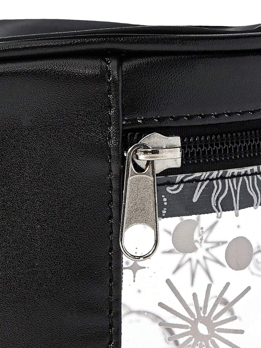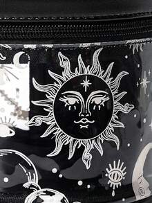 Fairycore 1pc Black Gothic Style Moon & Sun Print Large Capacity Portable Makeup Bag