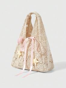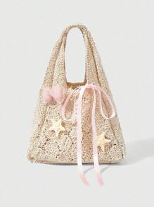 Fairycore 1pc Bohemian Style Beach Bag, Hollow Woven Net Tote Bag For Women, Vacation & Beach Decor