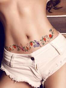 Fairycore 1pc Butterfly & Flower Henna Waist Tattoo Sticker