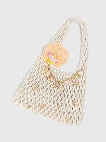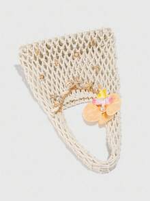 Fairycore 1pc Fashionable Personalized Spring/Summer Beach Vacation Style Orange Ocean Woven Beach Bag, Large Size Women Handbag