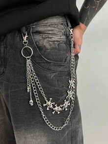 Fairycore 1pc Fashionable Punk Skull Waist Chain, Men's Hip Hop Personalized Body Chain, For Pants Decoration, Halloween Party Costume Accessory