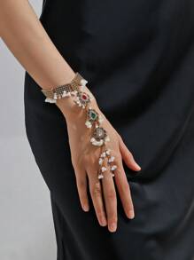 Fairycore 1pc Glamorous Zinc Alloy Rhinestone & Faux Pearl Decor Mitten Bracelet For Women For Dating Gift