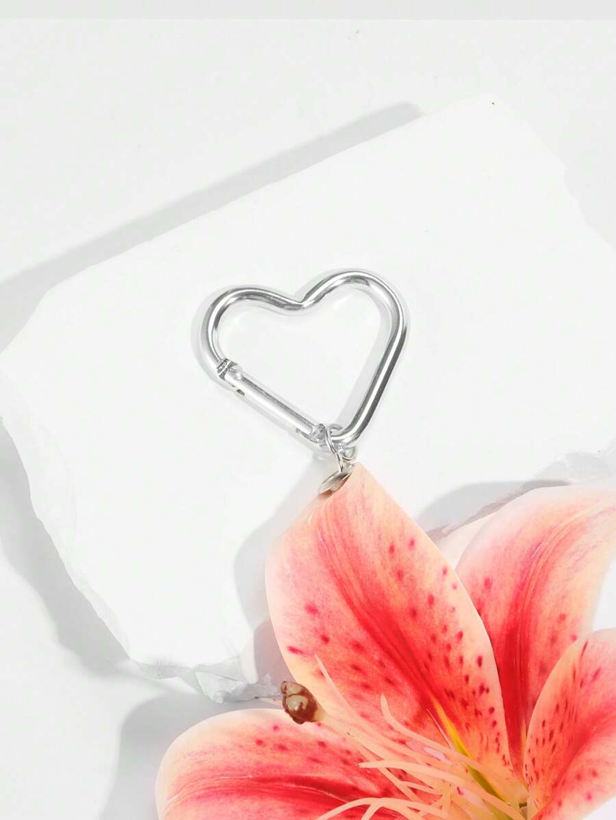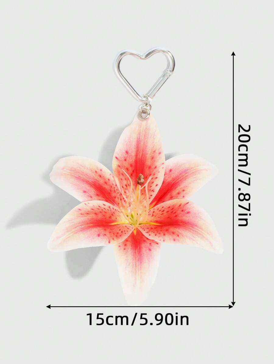 Fairycore 1pc Orange Gradient Lily Flower Decor Love Shape Keychain, Chic Style, Suitable As Beach Vacation, Wedding, Holiday Gift, Backpack Decoration For Teenagers