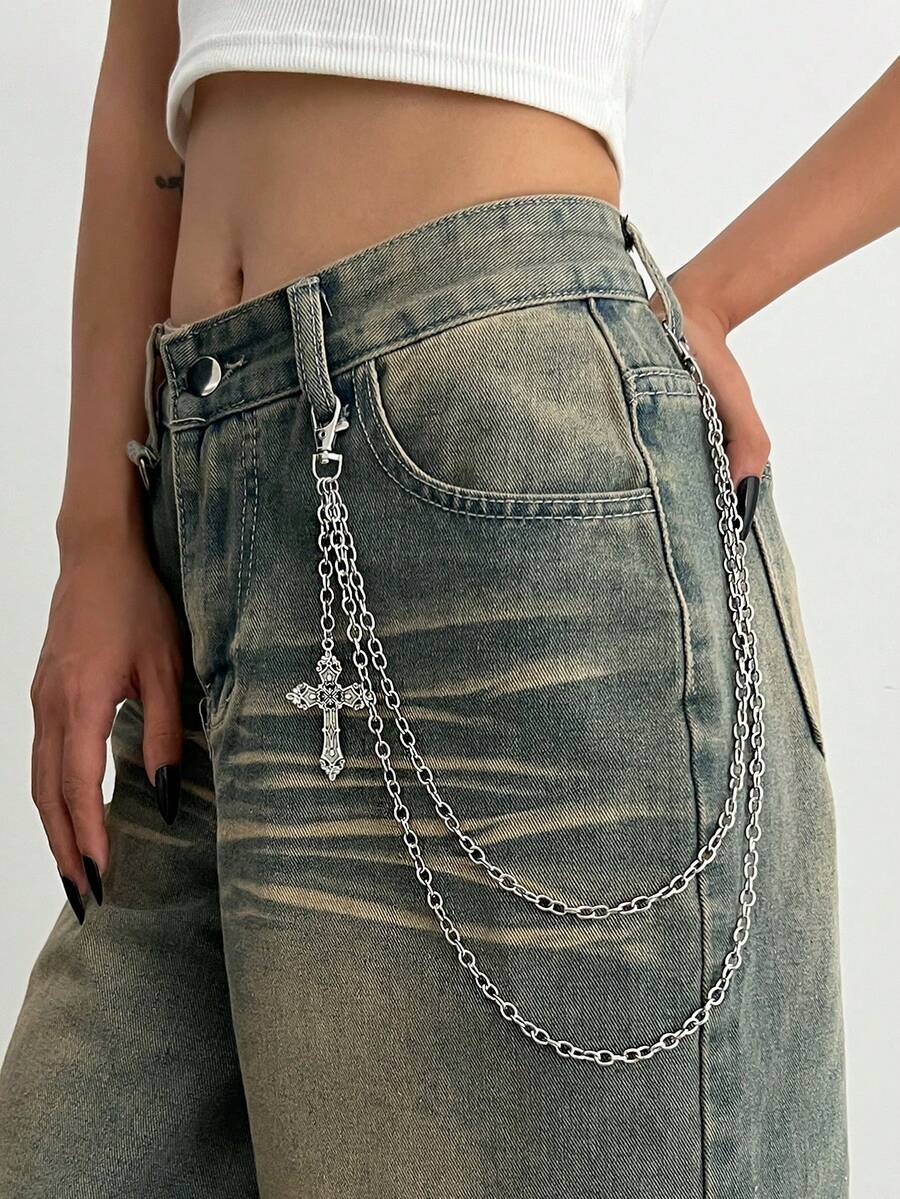 Fairycore 1pc Punk Style Cross Chain Waist Belt, Multi-Layer Iron Alloy Chain Body Chain, Women Personalized Charm Pants Chain, For Pants Decoration, Casual, Music Festival, Party Accessory