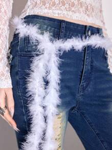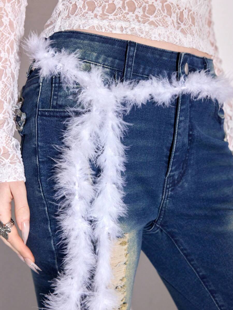 Fairycore 1pc Punk-Style Faux Feather Super Long Lace-Up Waist Belt (Loose Fuzz Is Normal Craft Phenomenon, Shake Before Use), Y2K Vintage Fluffy Buckle-Less Belt, Fashionable Personalized Decorative Accessory