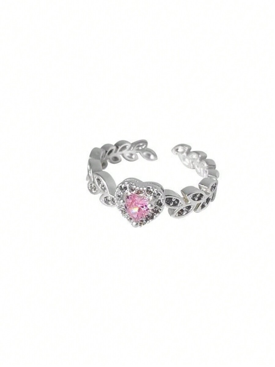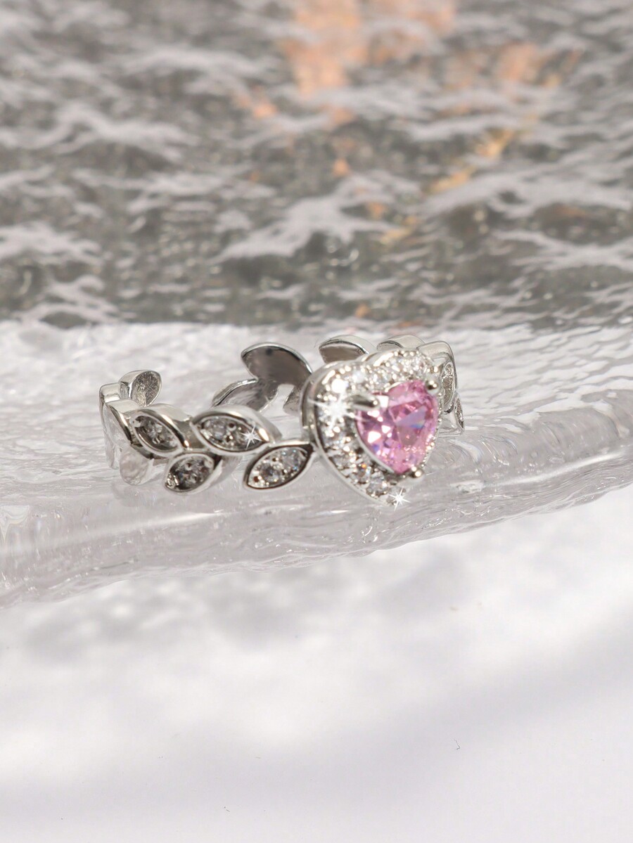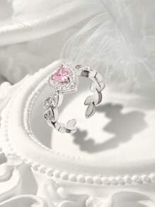 Fairycore 1pc Sweet Pink Heart Shaped Cubic Zirconia Ring