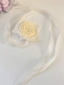 Fairycore 1pc Women Satin Camellia Bow Tie Choker Collar Necklace