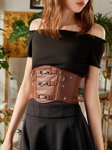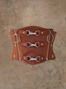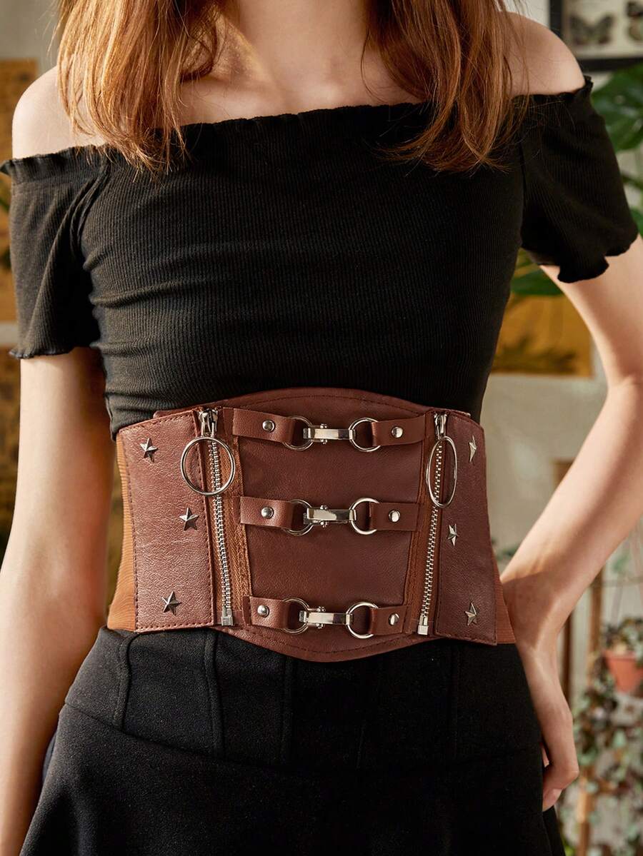 Fairycore 1pc Women Star Decor Zipper & Buckle Decor Punk Corset Belt