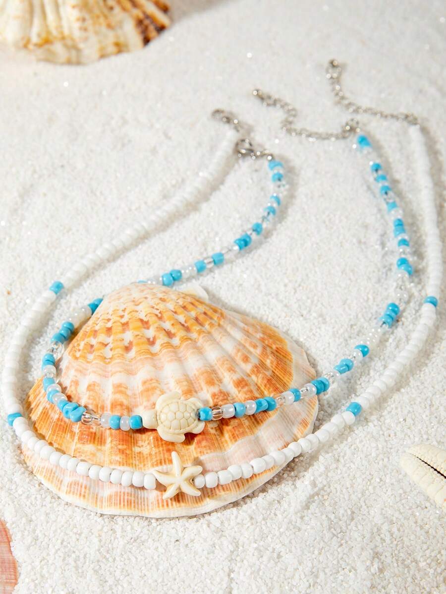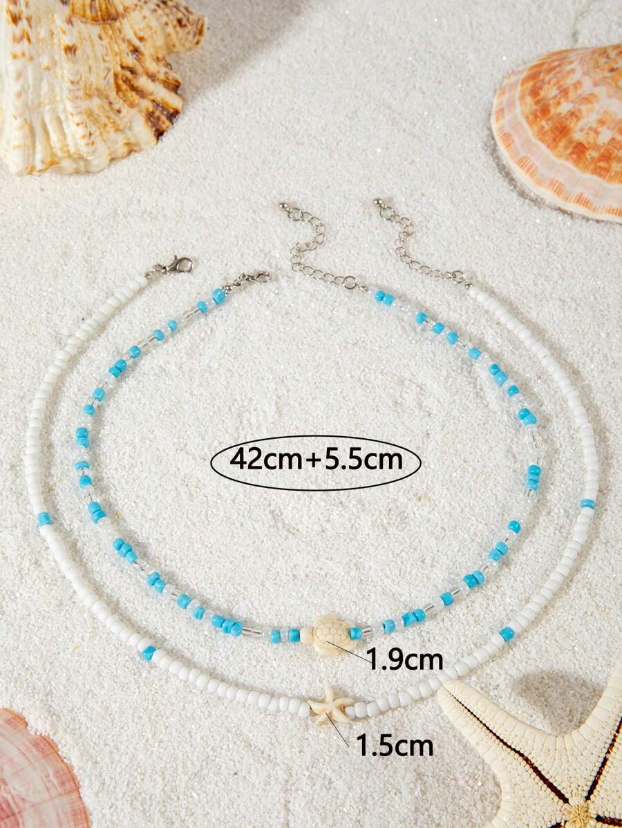 Fairycore 2pcs Elegant Bohemian Pearl Turtle & Starfish Pendant Necklace Set, Ocean Elements Jewelry, Party Gift