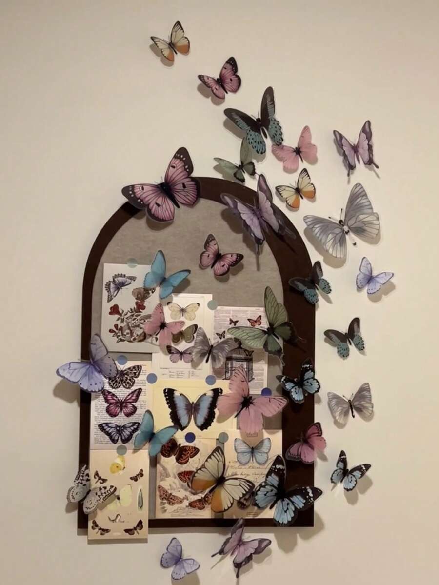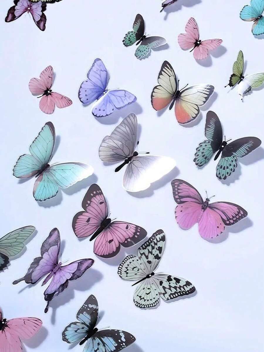 Fairycore 32pcs/Set Home Decoration Butterfly Stickers With Glue (Butterfly Colors And Sizes Are Random)