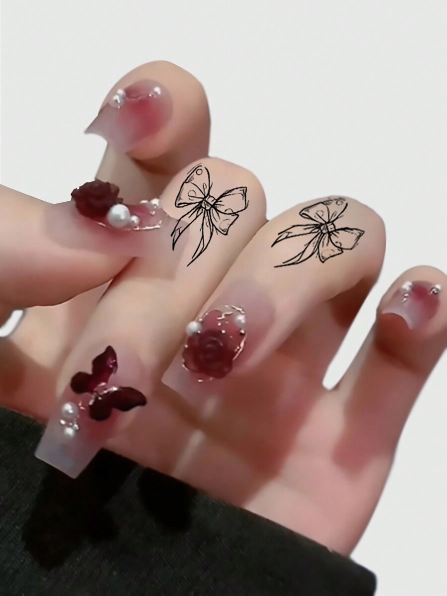 Fairycore A Dark Style Cute Girl Four Butterfly Pattern Finger Tattoo Sticker