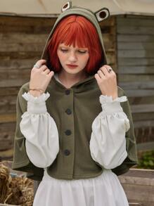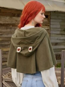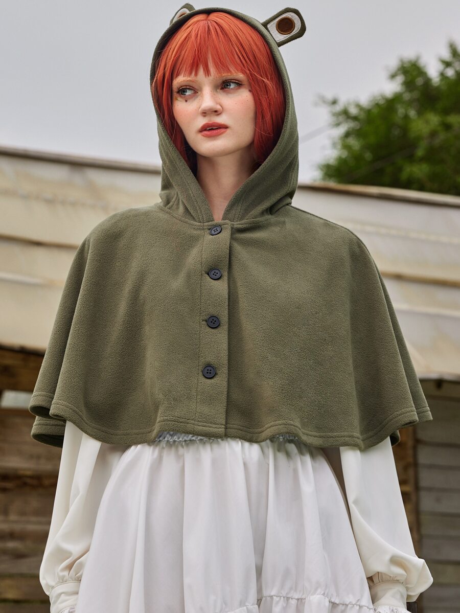 Fairycore Batwing Sleeve 3D Ear Design Hooded Cape