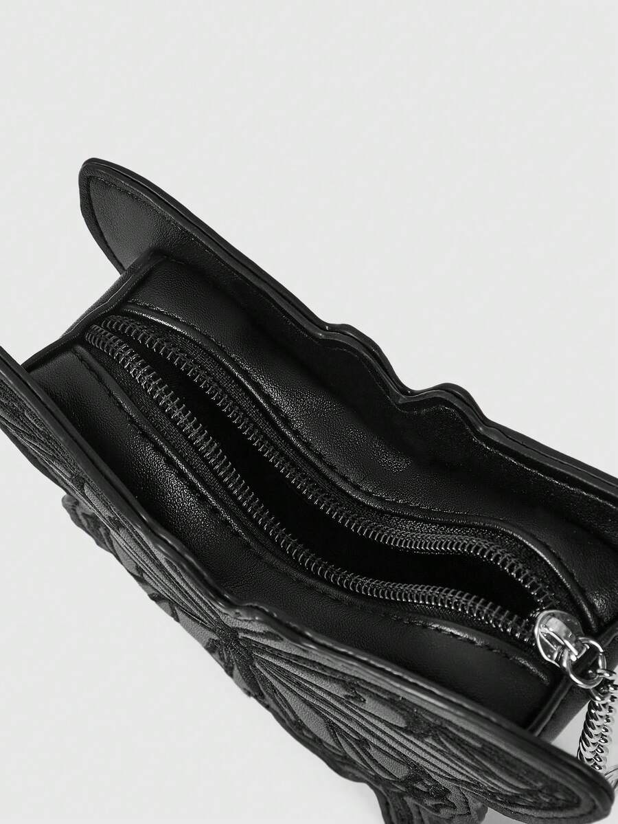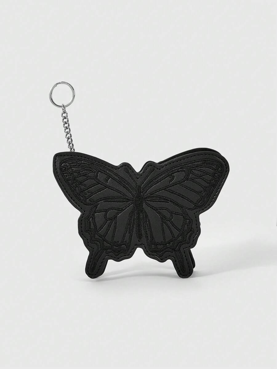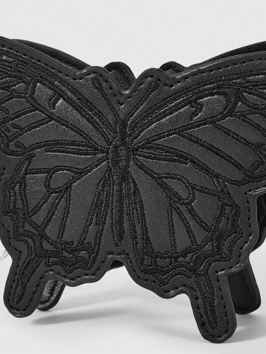 Fairycore Butterfly Embroidery Women Fashion PU Leather Coin Purse, Mini Bag With Keychain