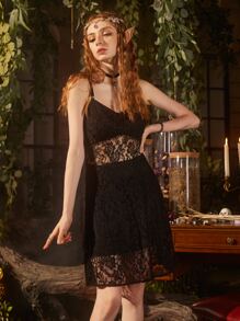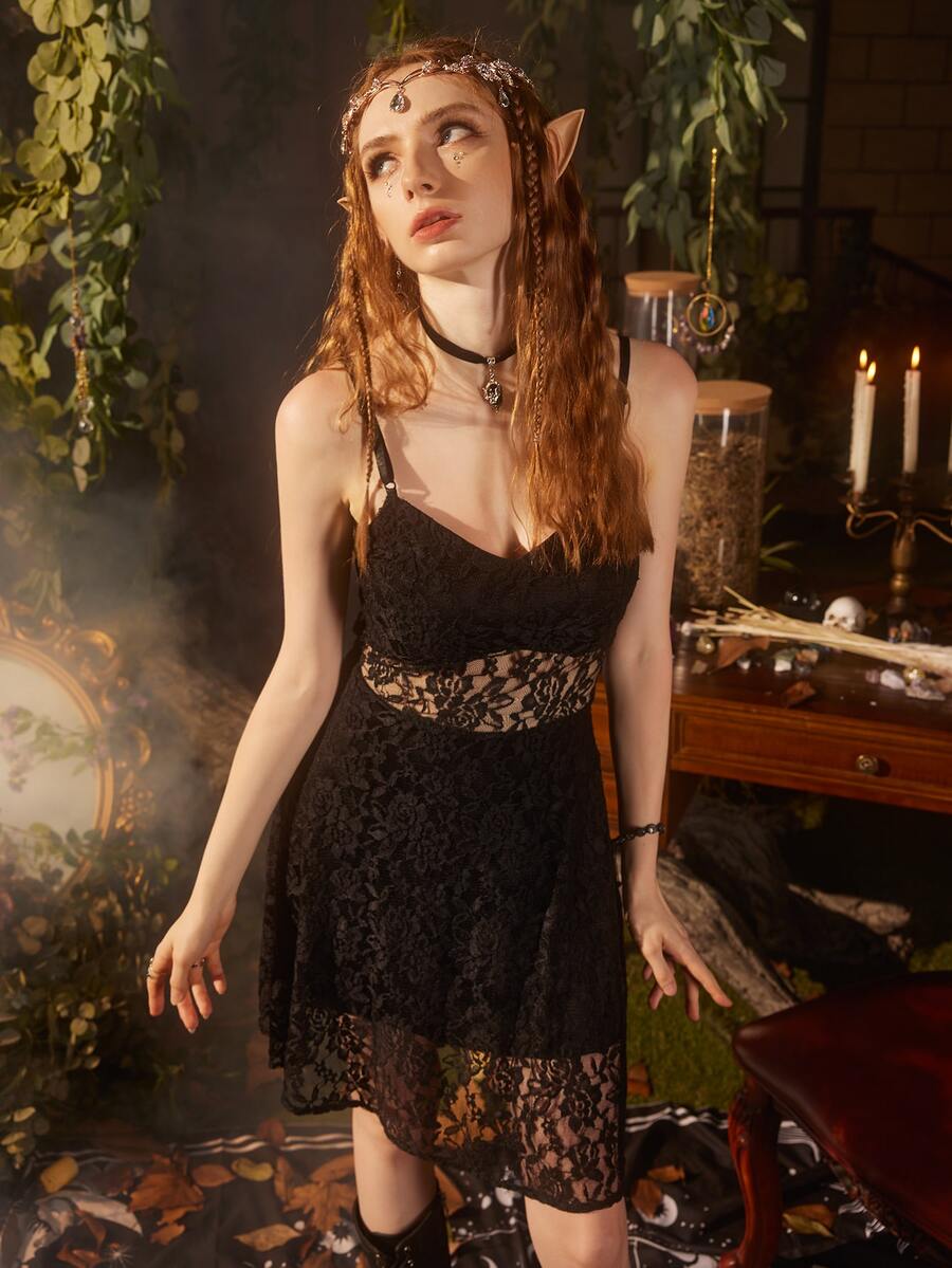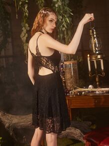 Fairycore Butterfly Patched Cut Out Lace Cami Dress
