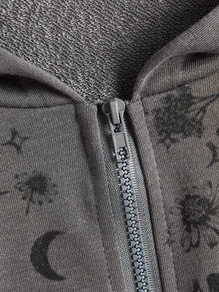Fairycore Butterfly Pattern Zipper Hooded Short Sweatshirt