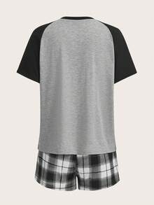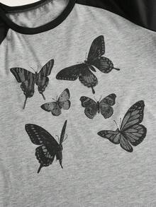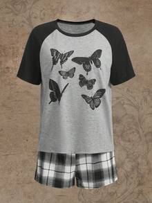 Fairycore Butterfly Print Raglan Sleeve Tee & Plaid Lounge Set