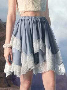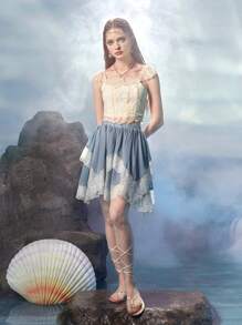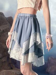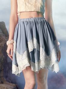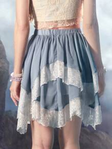 Fairycore Mermaid Contrast Lace Asymmetrical Hem Skirt