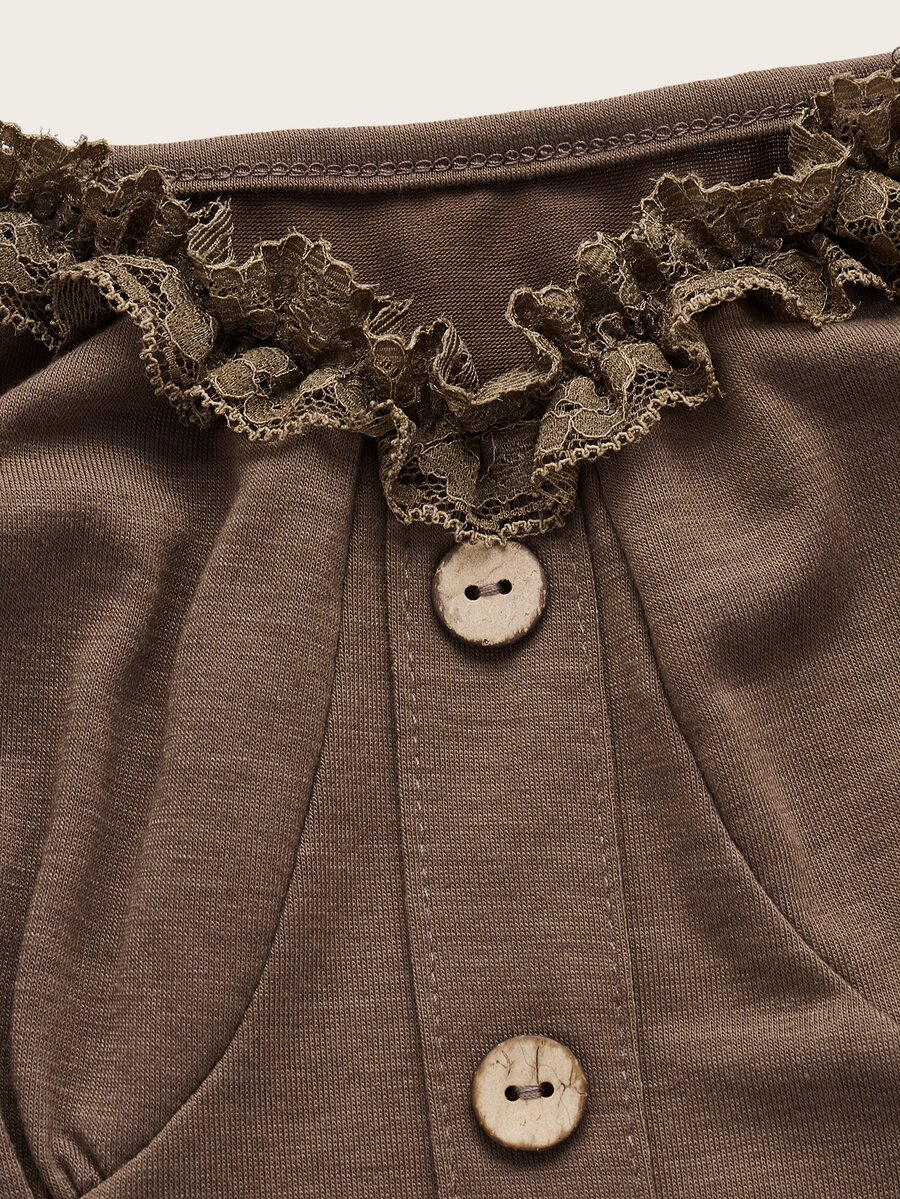Fairycore Contrast Lace Button Detail Tee