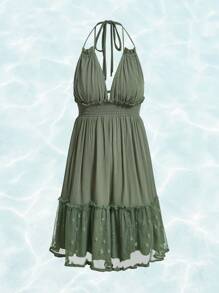 Hippie Contrast Mesh Ruffle Hem Cami Dress