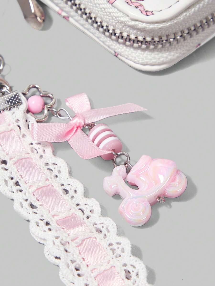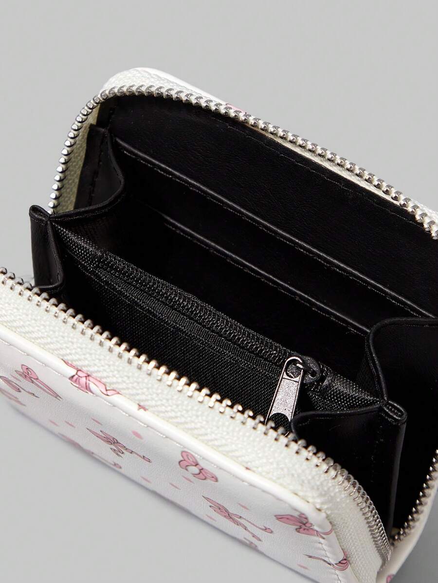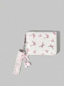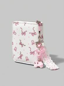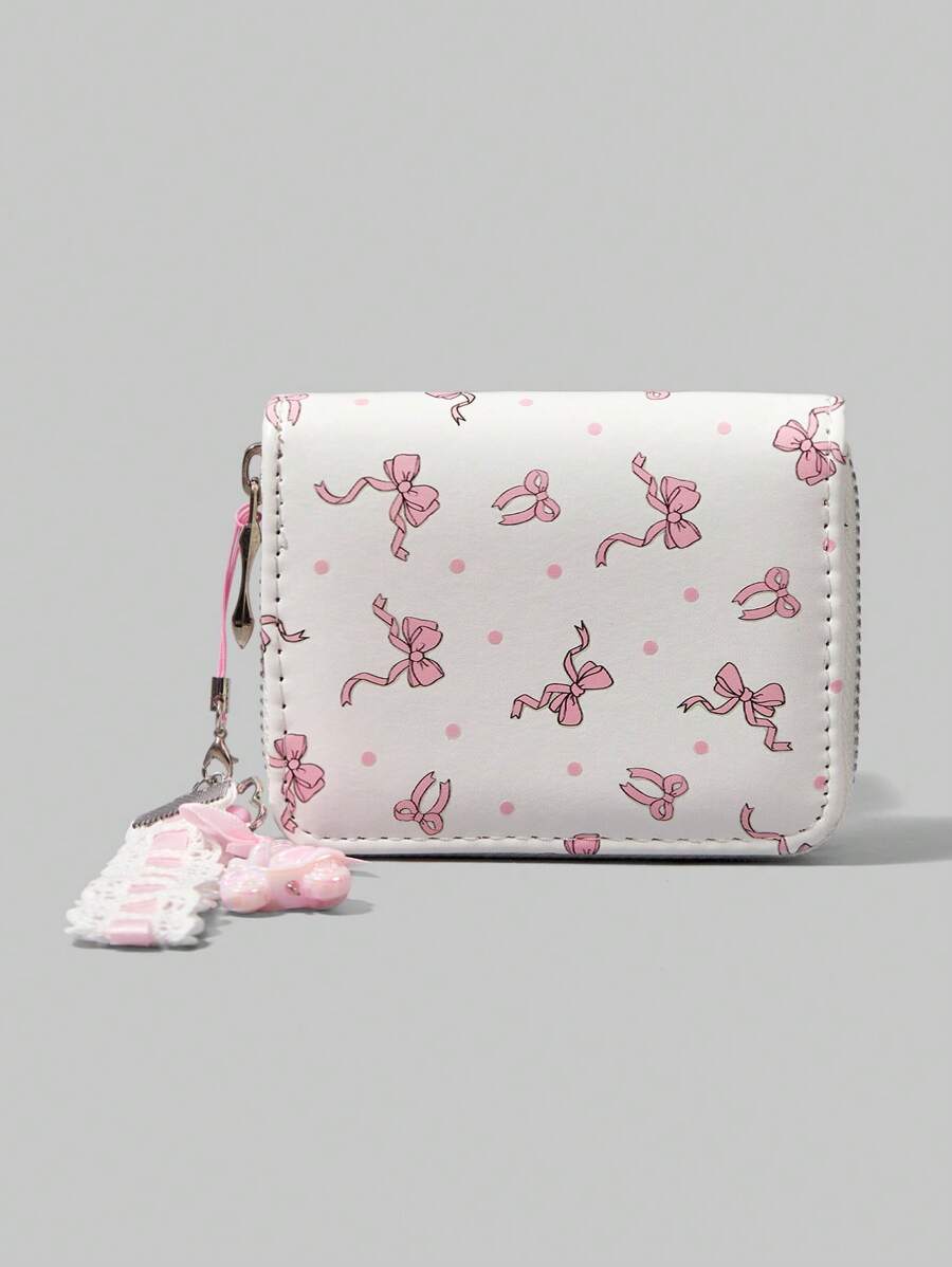 Fairycore Cute Pink Bow White Base Pink Polka Dot Wallet, Card Slots & Coin Pouch