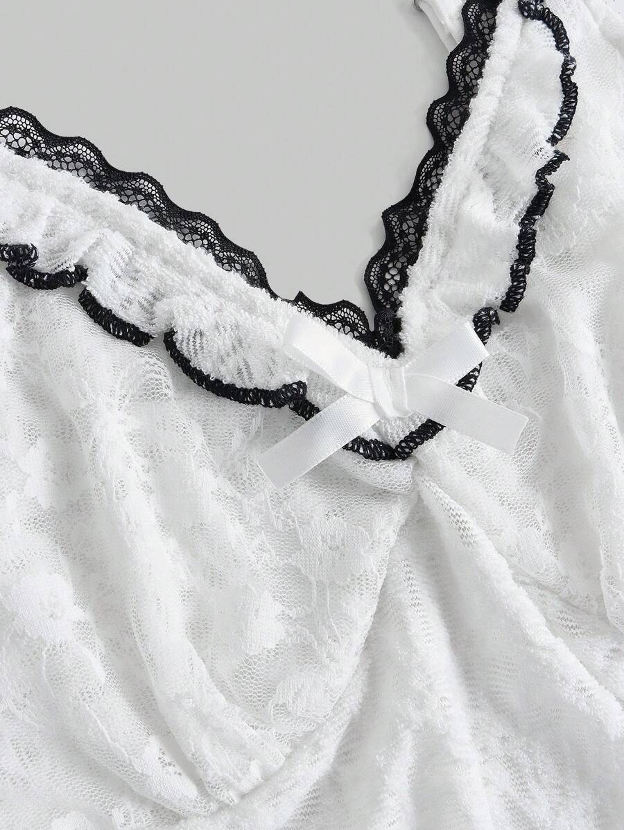 Fairycore Deconstructed Angel Lace Contrast Texture Fabric Scarf Collar Women Ruffle Detail Dress
