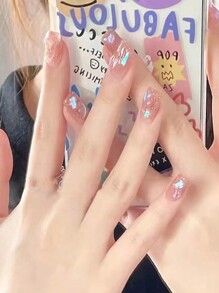 Fairycore Elegant Nail Art With Rhinestone Decoration