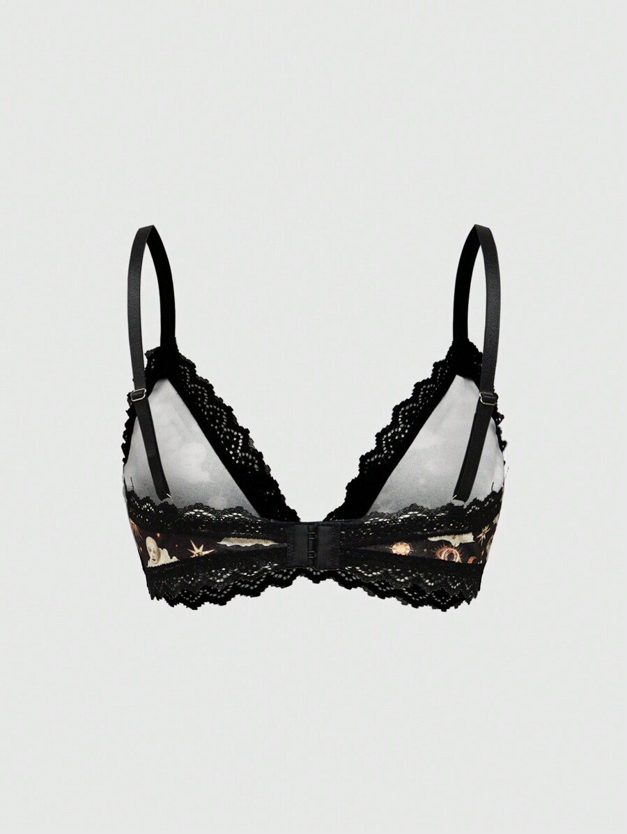 Fairycore Fairy Moon & Star Pattern Velvet Breathable Soft Floral Lace Patchwork Wireless Sexy Lingerie Set