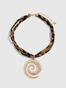Fairycore Fashionable Creative Geometric Spiral Pendant Necklace, Adjustable Leopard Choker Necklace, Ideal Gift For Girls On Festivals, Birthday, Party