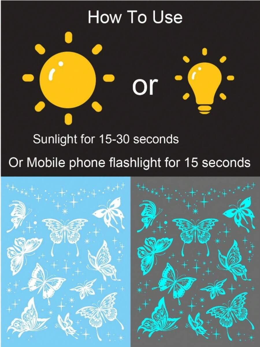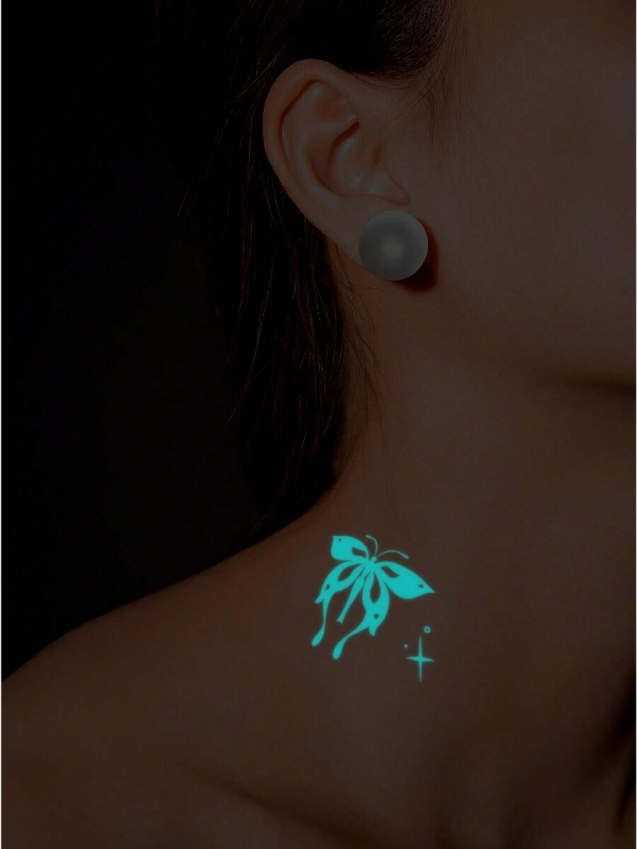 Fairycore Fashionable Glow In The Dark Temporary Tattoo Sticker With Butterfly & Star Design