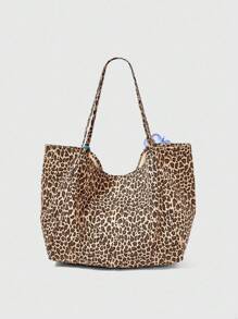 Fairycore Fashionable Summer Leopard Print Shoulder Bag, Large Capacity Beach Tote Bag For Women