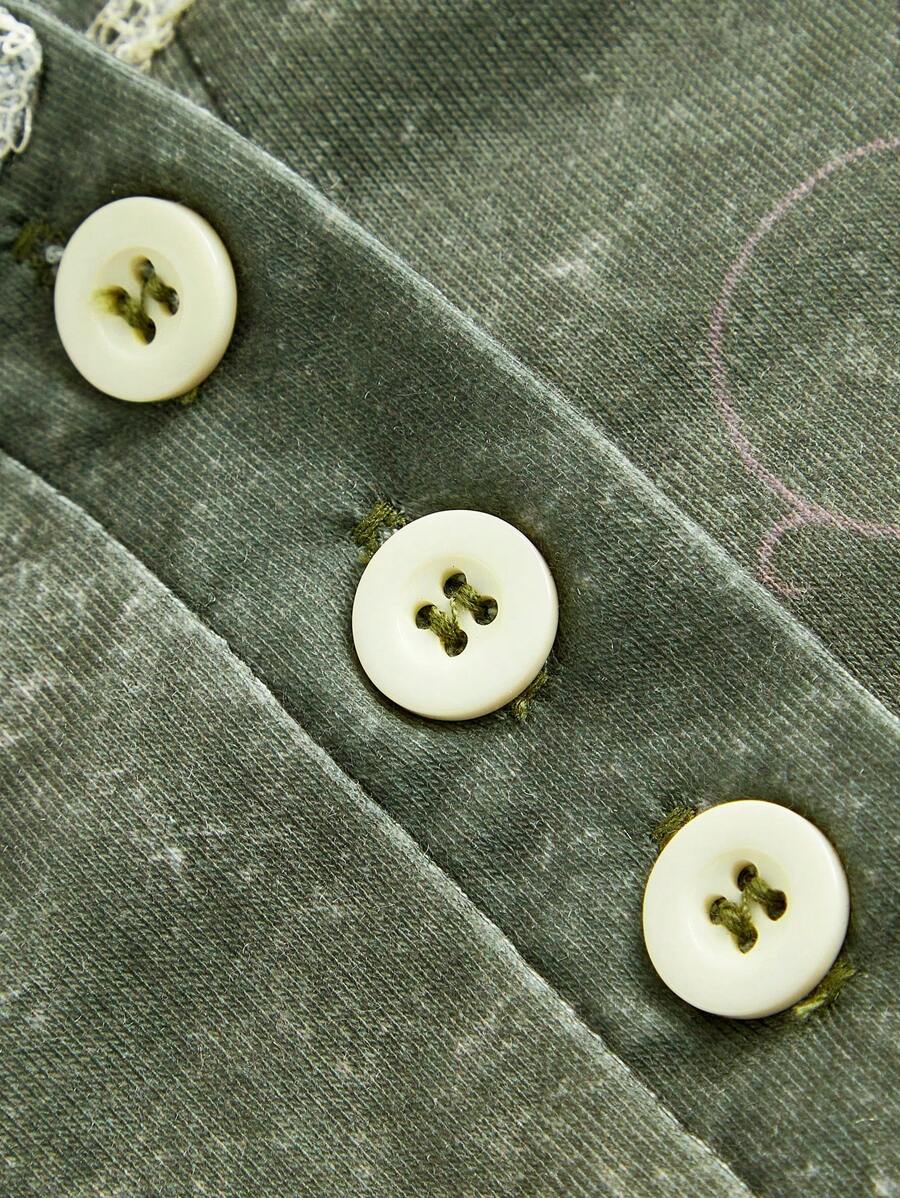 Fairycore Floral Print Top-stitching Tee