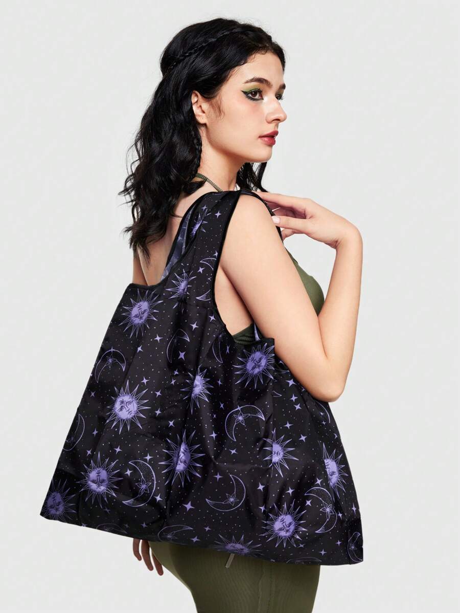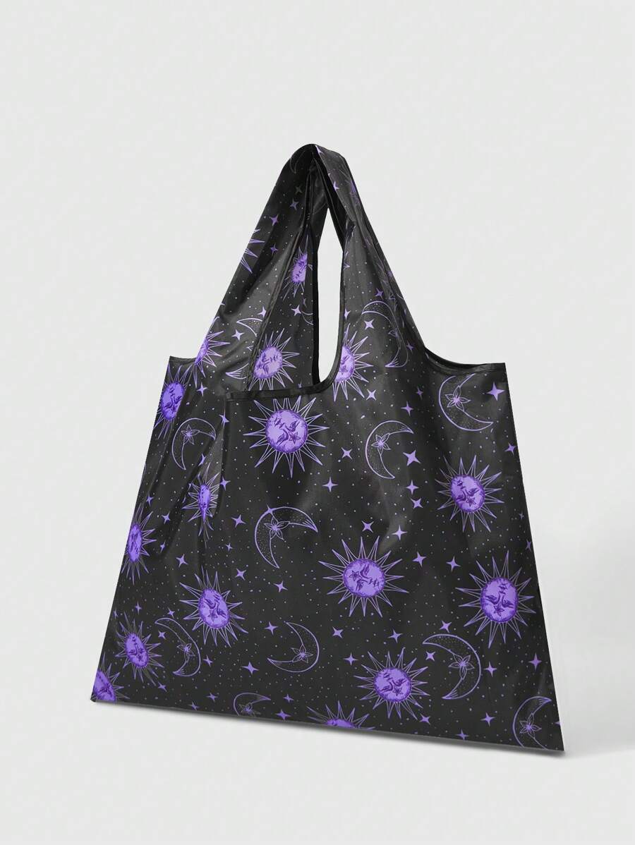 Fairycore Full Print Cosmic Moon & God Guardian Pattern Storage Bag, Large Capacity Foldable Shopping Tote Bag 506515