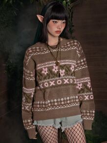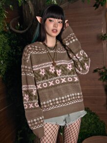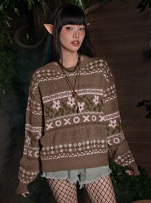 Fairycore Geo Pattern Drop Shoulder Sweater