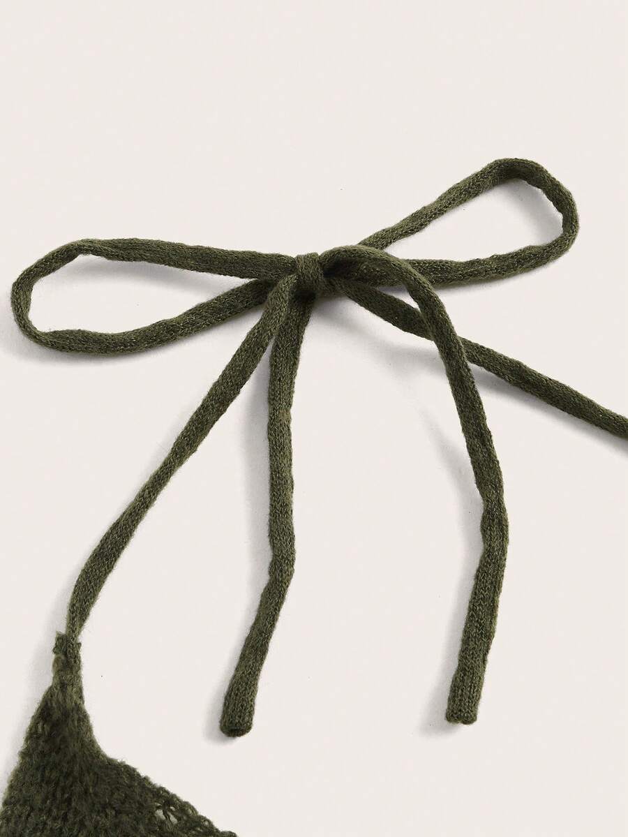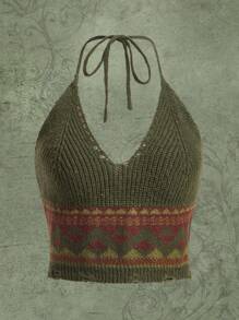 Geo Pattern Tie Backless Halter Knit Top