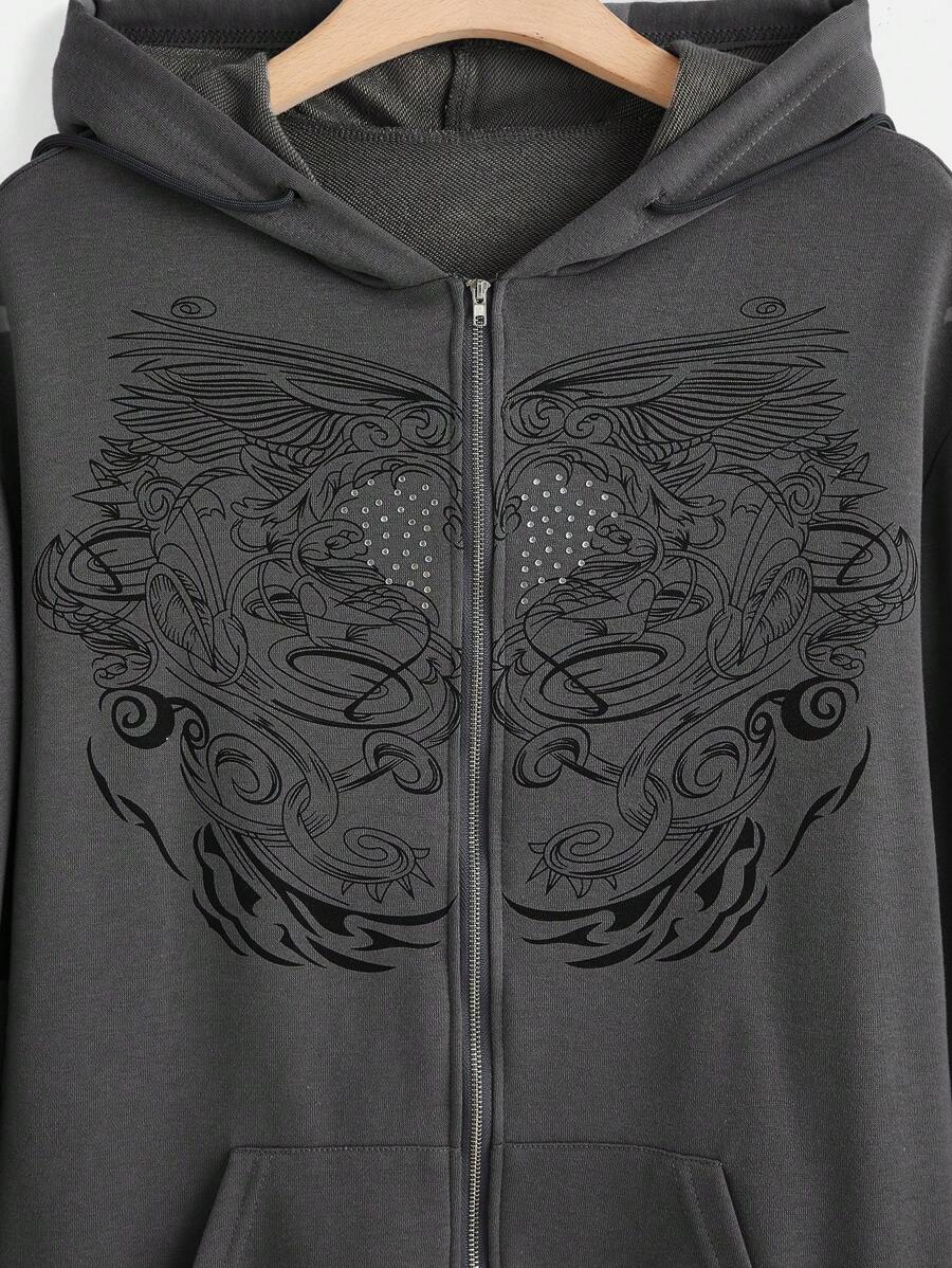 Fairycore Heart Graphic Zip Up Drawstring Hoodie