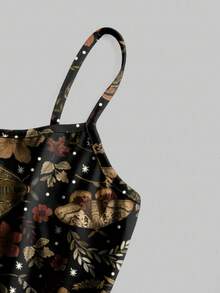 Fairycore Hippie Cute Moth Butterfly Flower Plant Autumn Maple Leaf Moon Star Full Print Mini Dress For Women