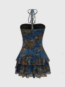 Fairycore J-Fashion Women's Vintage Paisley Floral Print Backless Dress
