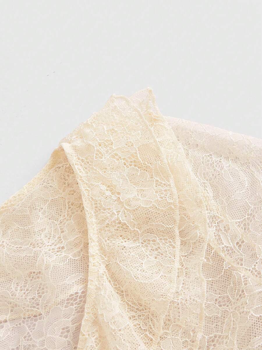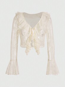Fairycore Lace Perspective Ruffle Hem Tie Front Top