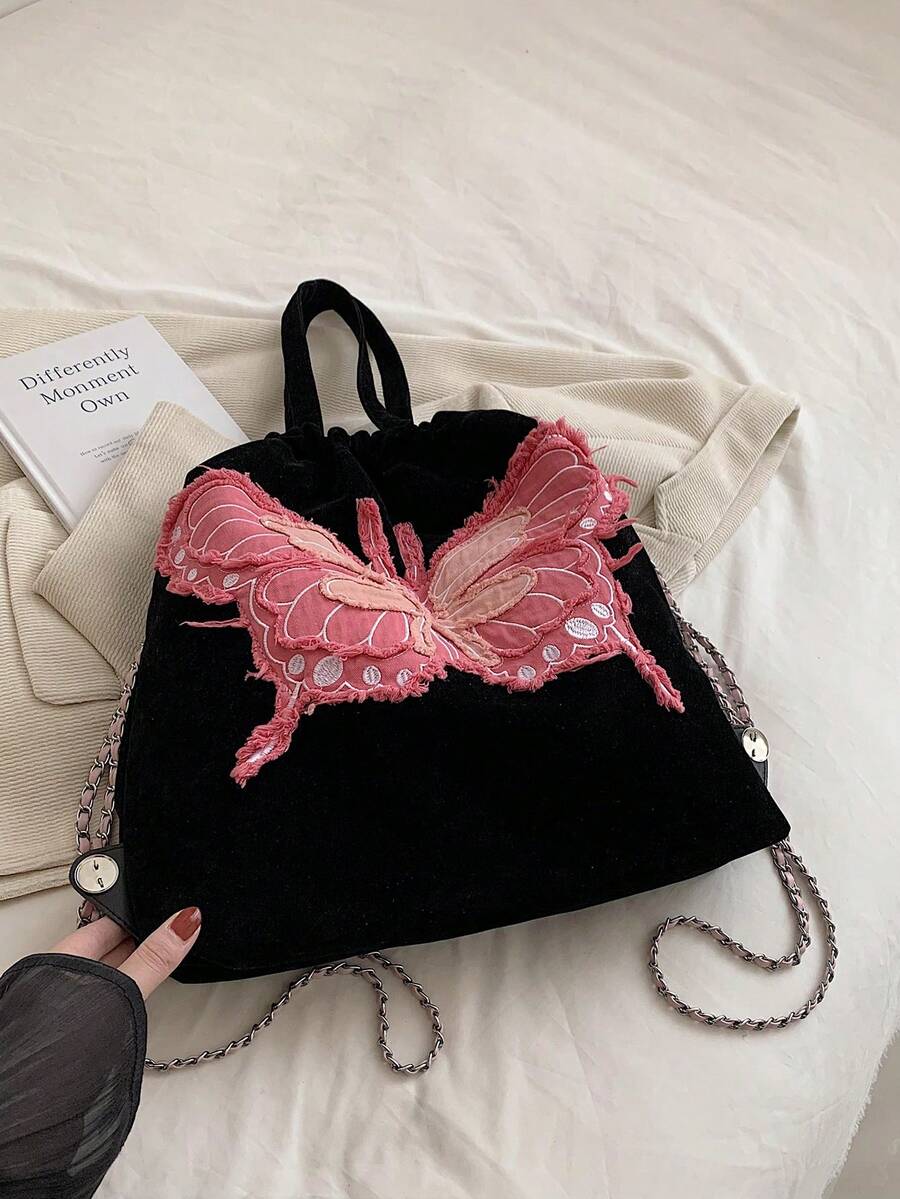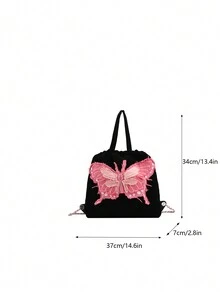 Fairycore Large Drawstring Backpack Casual Butterfly Graphic For Women For Daily