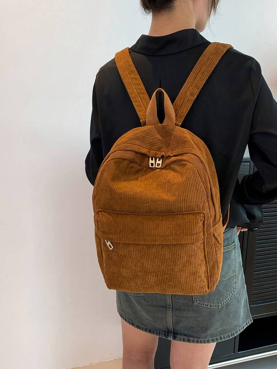 Fairycore Medium Backpack Fashion Solid With Zipper For Student