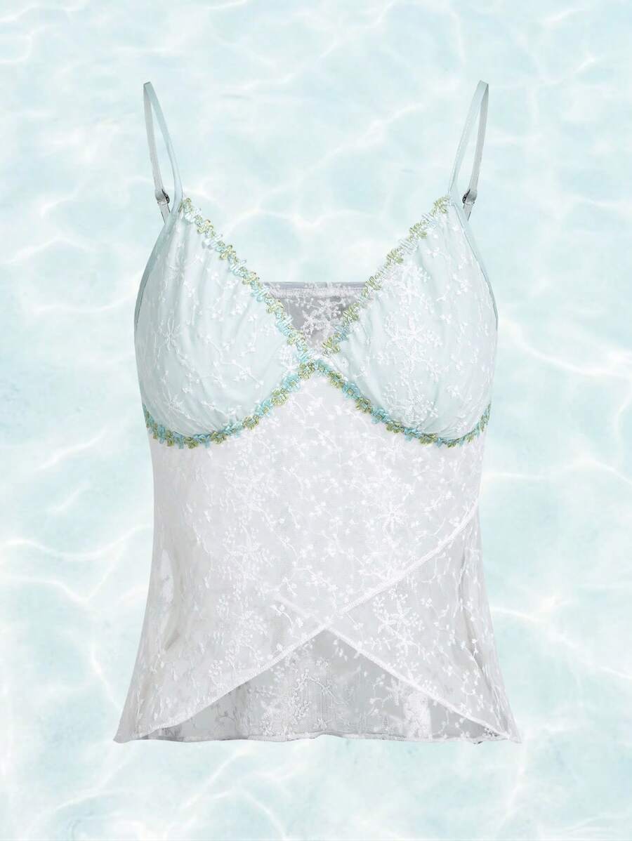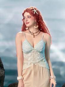Fairycore Mermaid Color-block Lace Cami Top