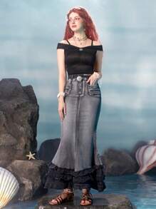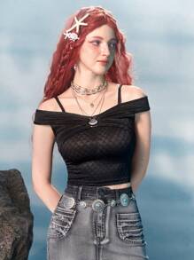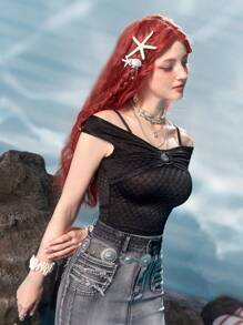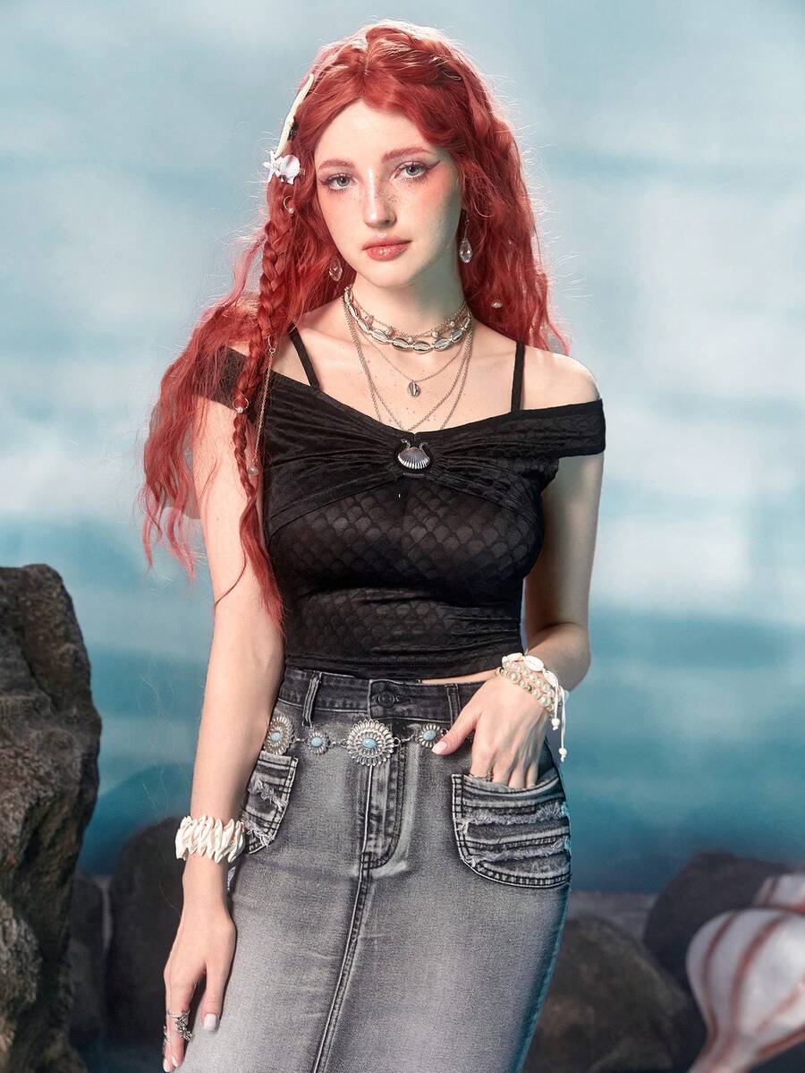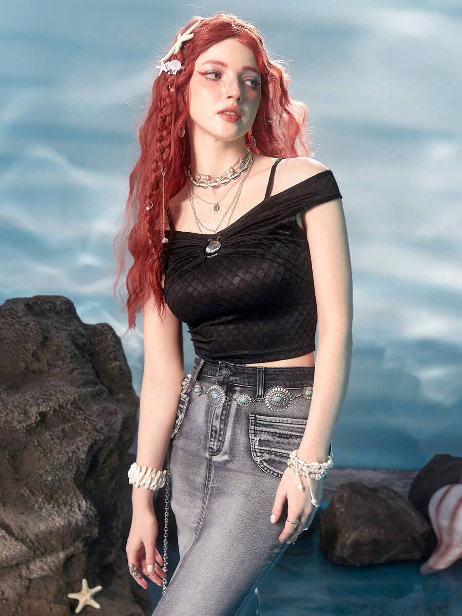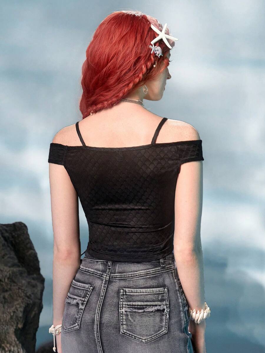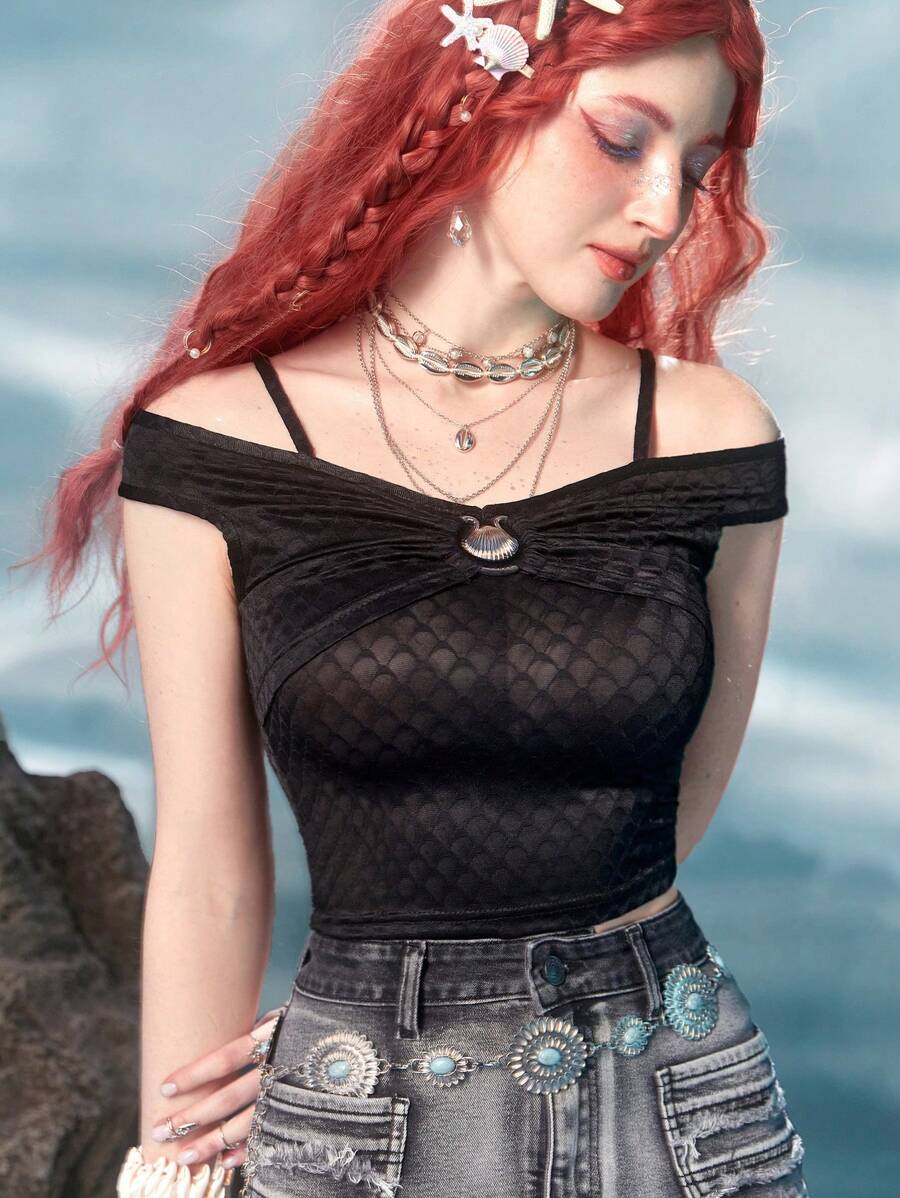 Fairycore Mermaid Shell Decor Cold Shoulder Crop Top