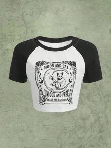 Fairycore Moon Graphic Raglan Sleeve Tee