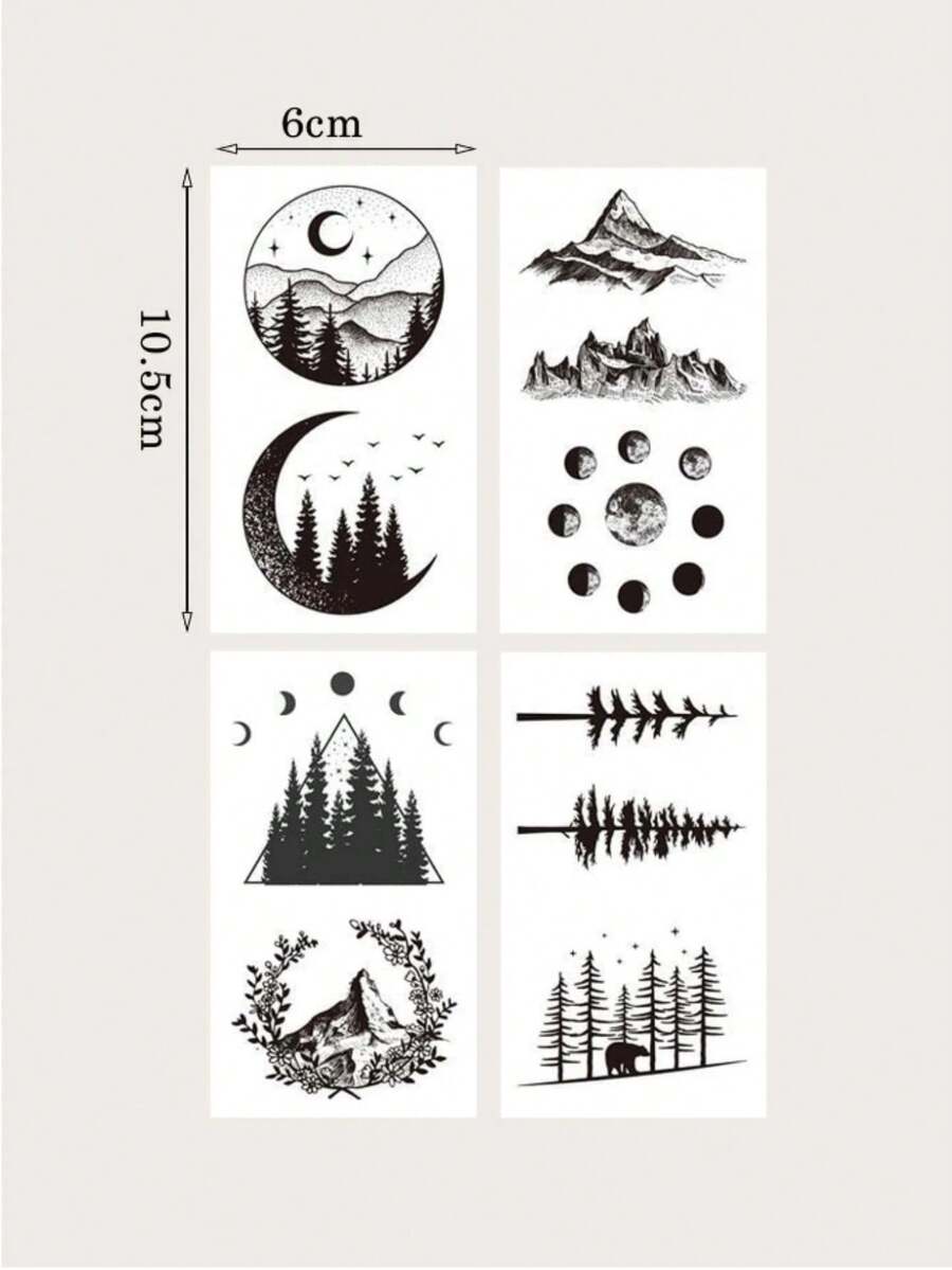 Fairycore Mountain Moon Trees Theme Temporary Tattoo Sticker