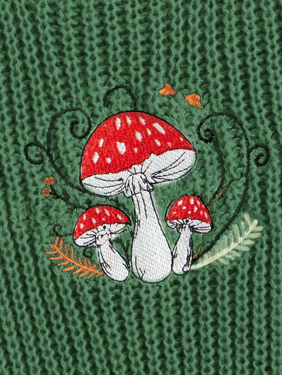 Fairycore Mushroom Embroidery Lantern Sleeve Sweater