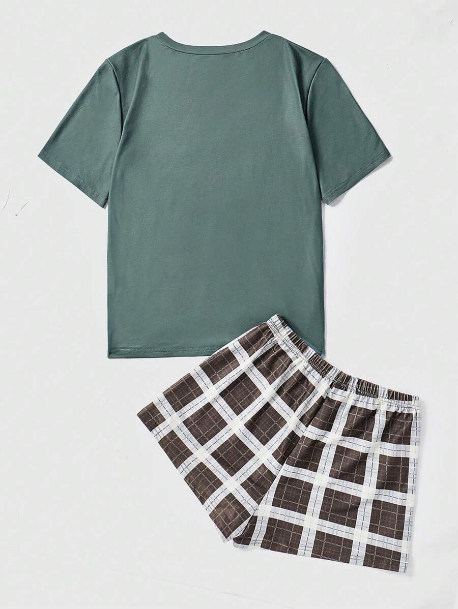 Fairycore Mushroom Pattern Short Sleeve T-shirt And Plaid Shorts Pajama Set